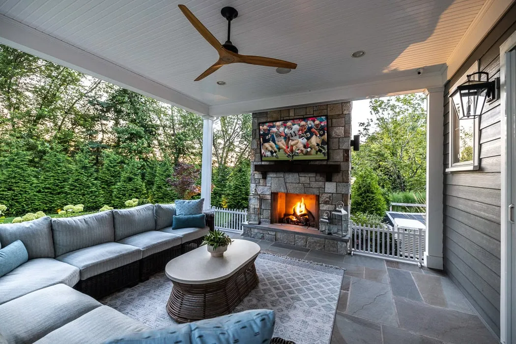 Pavilions can be designed in unlimited sizes and shapes with a wide range of amenities such as fireplaces, TV’s, heaters, sound systems, kitchens, ceiling fans, bars, lights, etc.